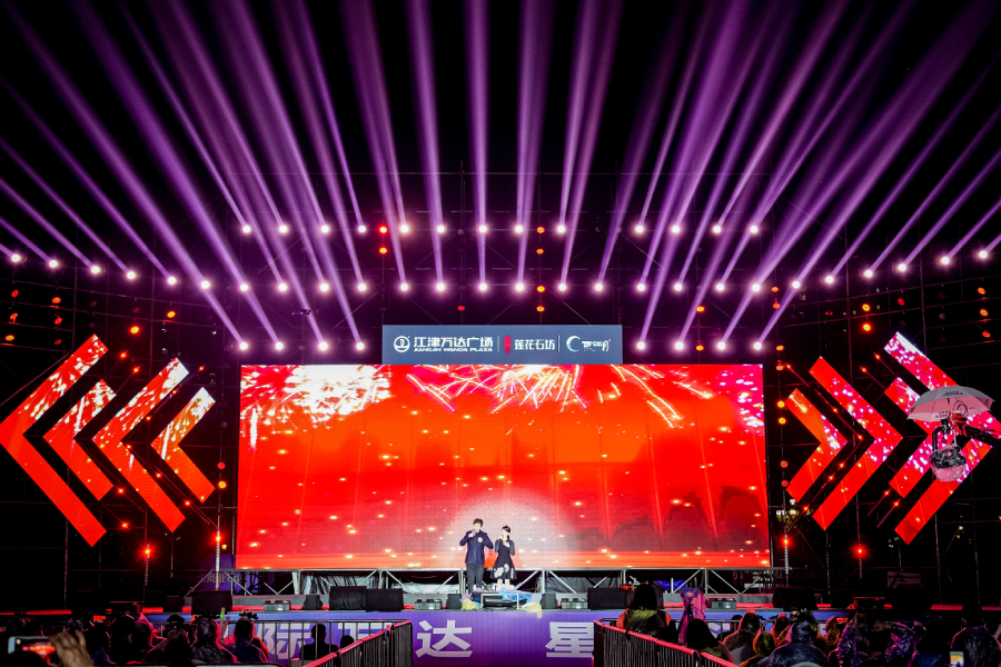 為了便于觀眾觀看,搭建的舞臺要有一定的高度,要根據觀眾席的長度去調節舞臺的高度,觀眾席越長,就要相應的調節舞臺的高度,以便后面的觀眾也能看到;這次活動的規模很大,出演的演員也多,舞臺的層次感一定強,為這個問題,我們一次又一次的實驗,力求最好的角度,呈現最好的效果。