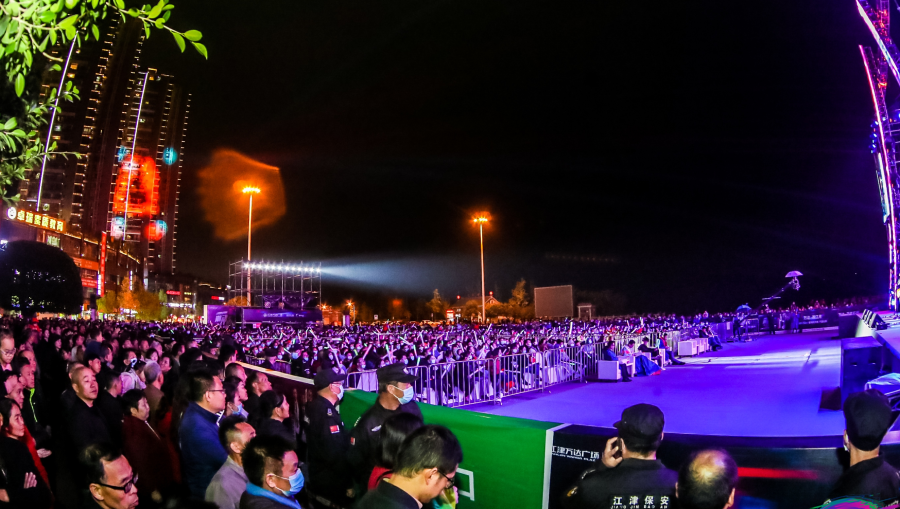 夜晚的江津熱鬧非凡,聲浪的傳播以及夜晚的燈光照亮并感染江津每一個角落。